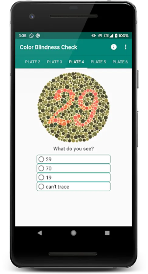 This application is based on Ishihara test plates for determining red-green color vision deficiency. According to a research approximately 8% of male are affected with color vision deficiency.