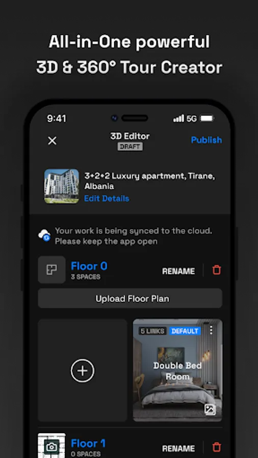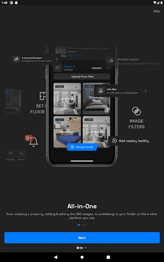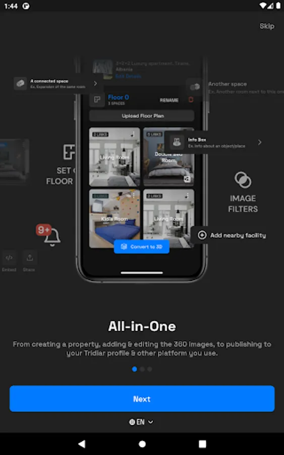 All-In-One Virtual Tour creator app. From creating a property, adding & editing the 360 images, to publishing to your Tridiar profile & other platforms you use.