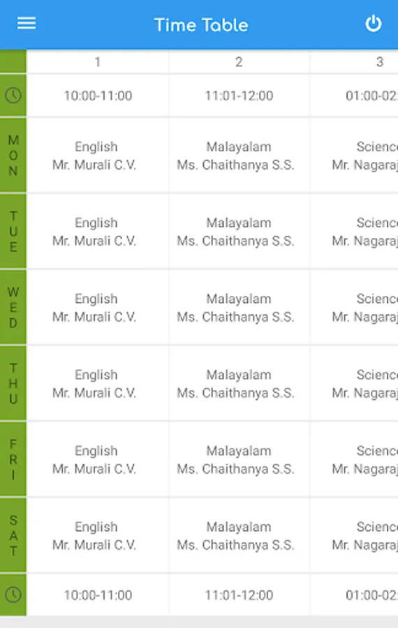 8. Time Table