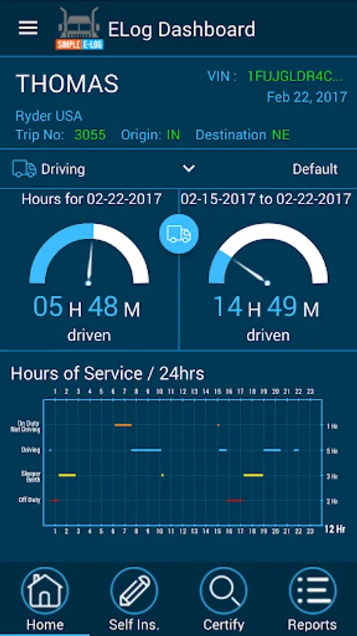 The Simple E-Log solution is designed so drivers and motor carriers can stay in compliance with FMCSA regulations and that drivers can use our system as their sole means of recording HOS information and ensuring compliance.