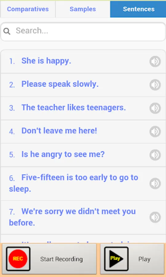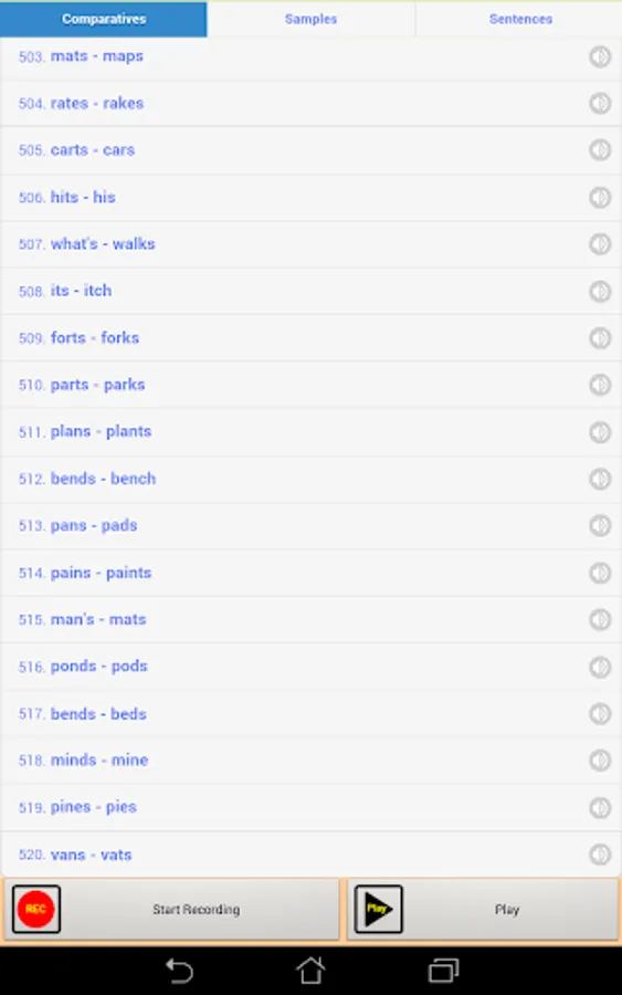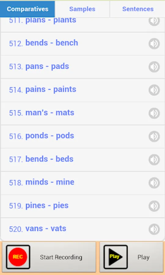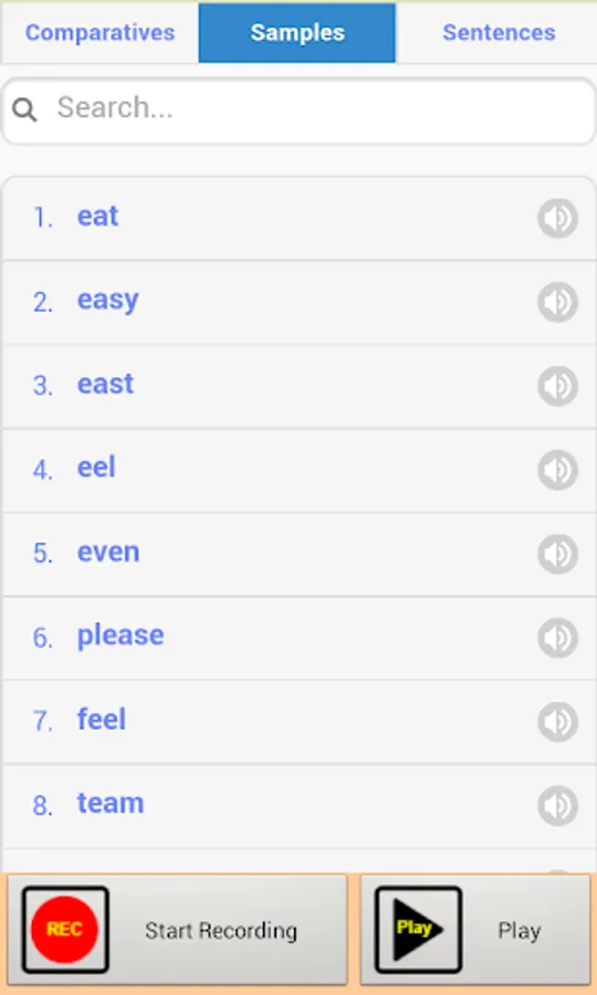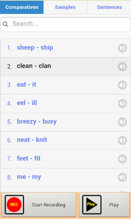 The app provides thousands of recorded sounds. There are 3 groups of sounds: