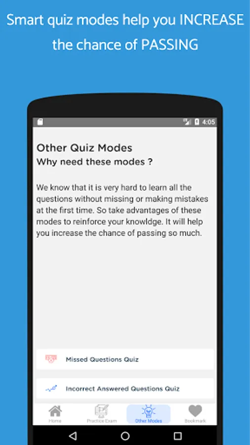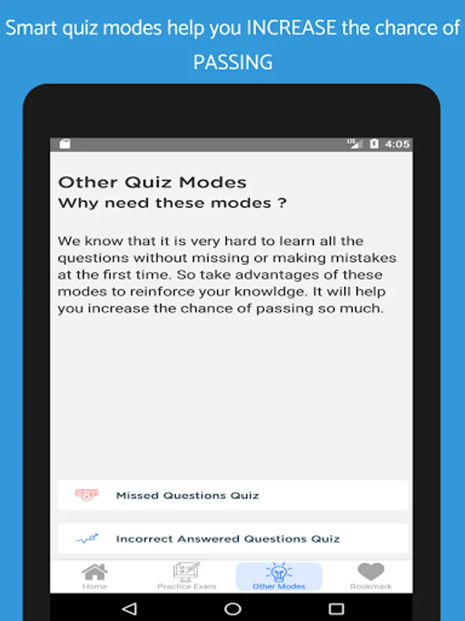 4.Examination mode will help you take test like a real exam. So you will be more confident.