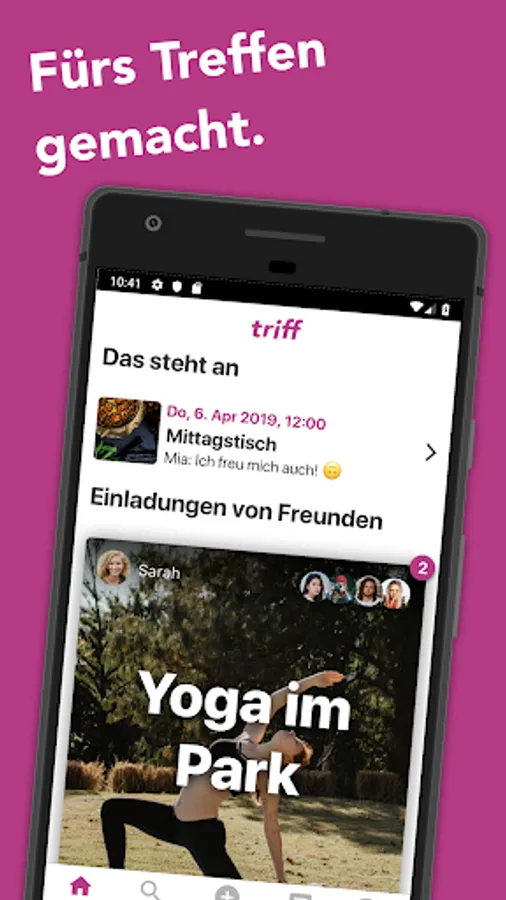 No matter how spontaneous you are, Triff is just as spontaneous. That's why the app opens directly on the Invite screen - from where you can reach anyone you want to meet with a single invitation. And directly on her smartphone. You can not organize a meeting faster.