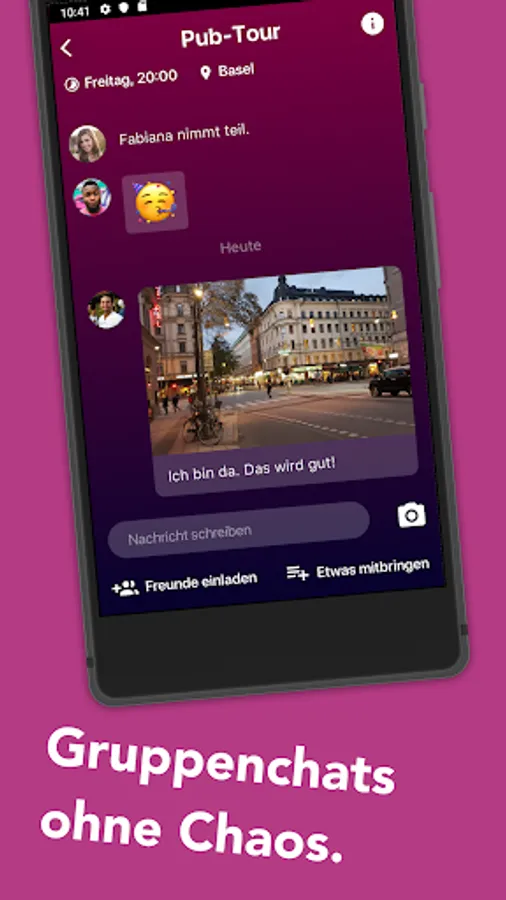 With a hang-out, you can organize activities together more easily than ever before. Whether it's a meal with friends, a game of football or a glittering party: make a meeting - and your table is full, your team is complete and the party can start.