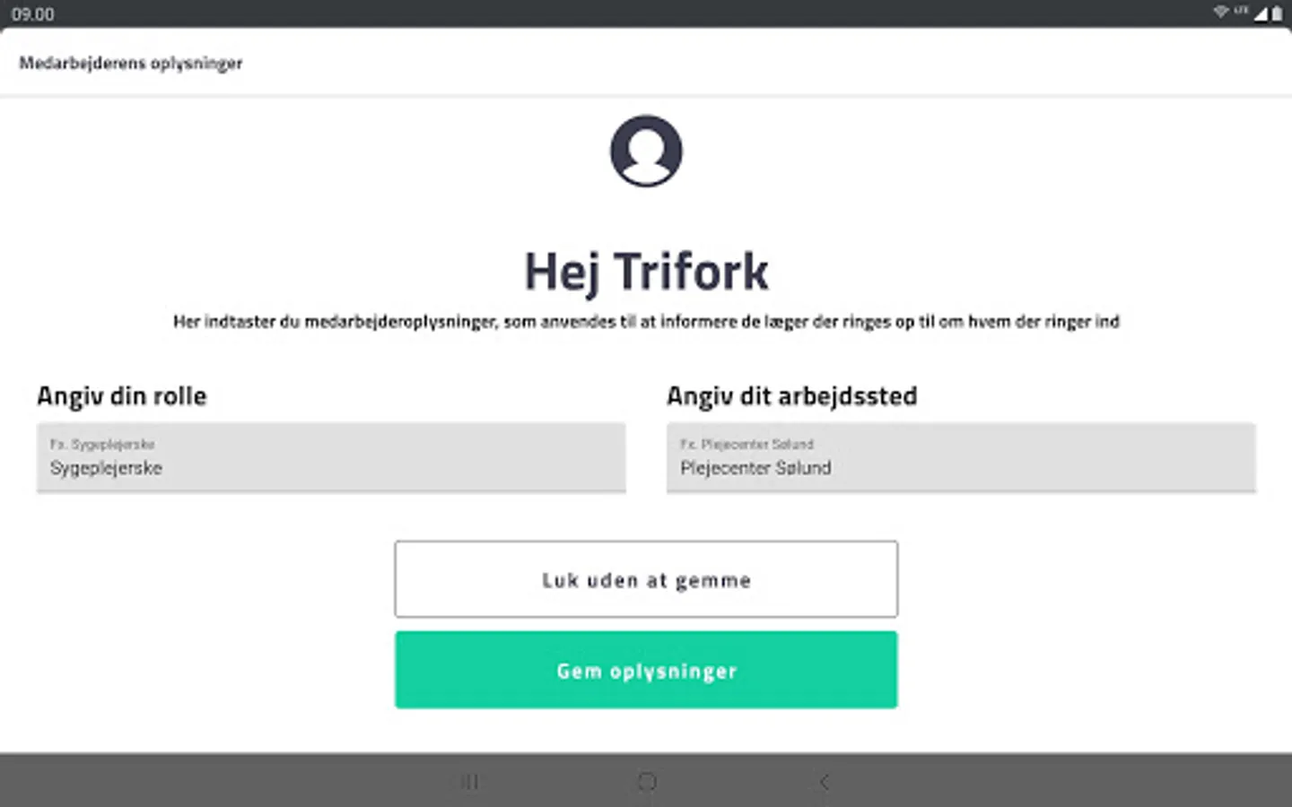 Each municipality decides whether the app should be accessible to its employees and which professional groups can use the app. In addition, an agreement must be made between the municipal units and the relevant medical clinics. Practitioners receive users of both the Contact Doctor app and the My Doctor app in the clinic's virtual waiting room. Each clinic must offer video consultation and be open to the virtual waiting room before an employee can queue at the clinic on behalf of a citizen.