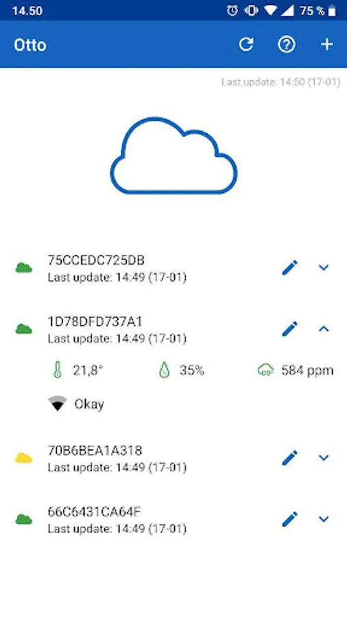 OTTO Climate App is the dashboard to your indoor climate. Each OTTO Sensor will indicate the quality of the current indoor climate. Several OTTO Sensors will show the aggregate indoor climate of the entire building in one overview on the Smartphone making it easy to act at the wrong level of temperature, humidity or CO2.