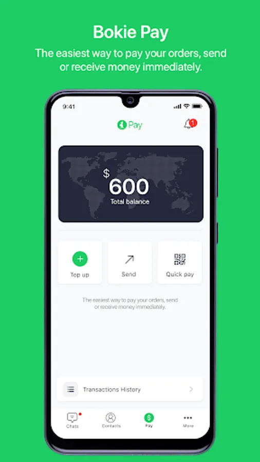 BokiePay is The easiest way to pay your orders, send or receive money immediately.