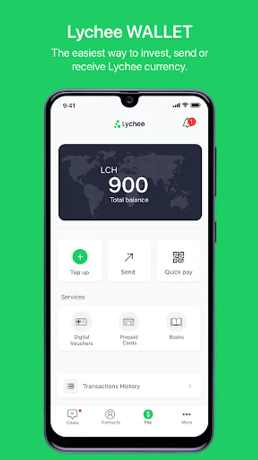 Notifications: Lychee sends you instantaneous notifications and alerts on the status of receiving or transferring a balance immediately as it is executed.
