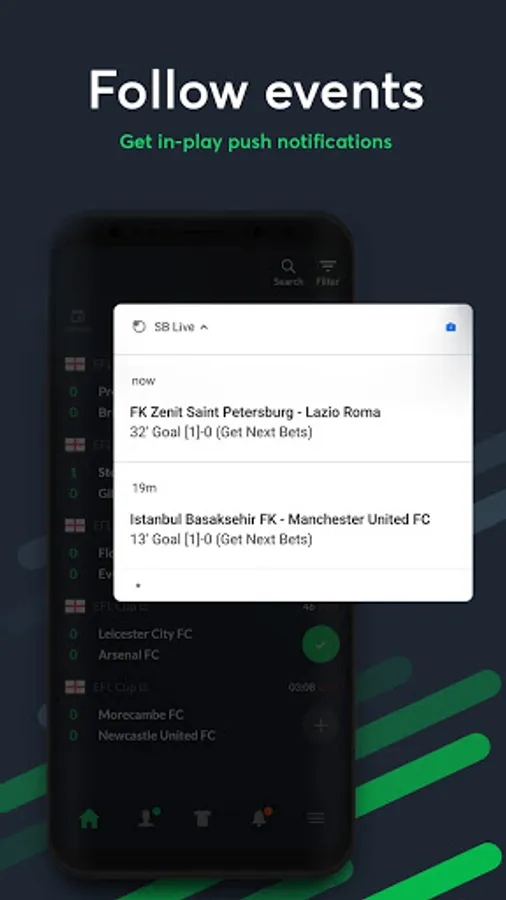 β Your one-stop shop for the sports live scores you need. You won't miss a beat when it comes to MLS, basketball, baseball, or ice hockey with SB LIVE personalized goal alerts or live score notifications! Customize your own goal alerts & real time notifications of your favorite MLS, NFL, Soccer, NBA, NHL, or MLB teams. Let SB LIVE keep you up-to-date with the latest sports scores and Soccer news, both in the present and in the past! You can set triggers for odds, goals and take action if the odds go above certain points!