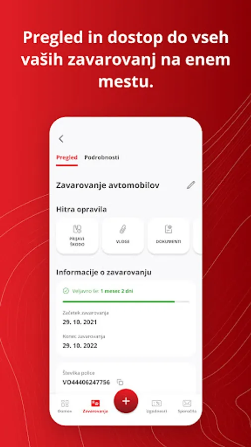 • dodajanje, urejanje in pregled vaših zavarovalnih polic kjerkoli in kadarkoli,