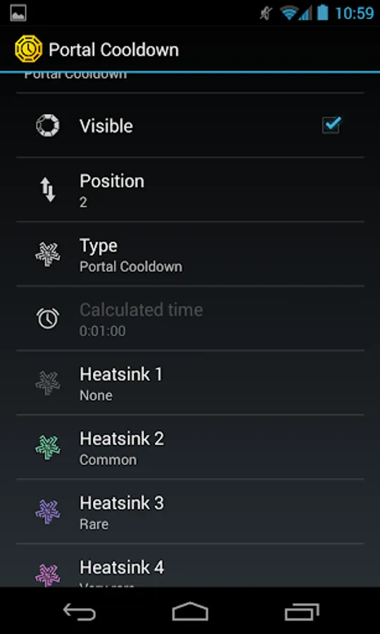 - Portal cool down timer with hack counter: just select the mods in the configuration panel and the app will calculate the number of hack and the cooldown time for you. The hack counter will countdown as soon as you restart the timer.