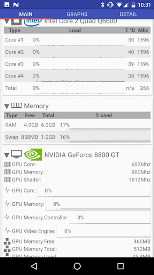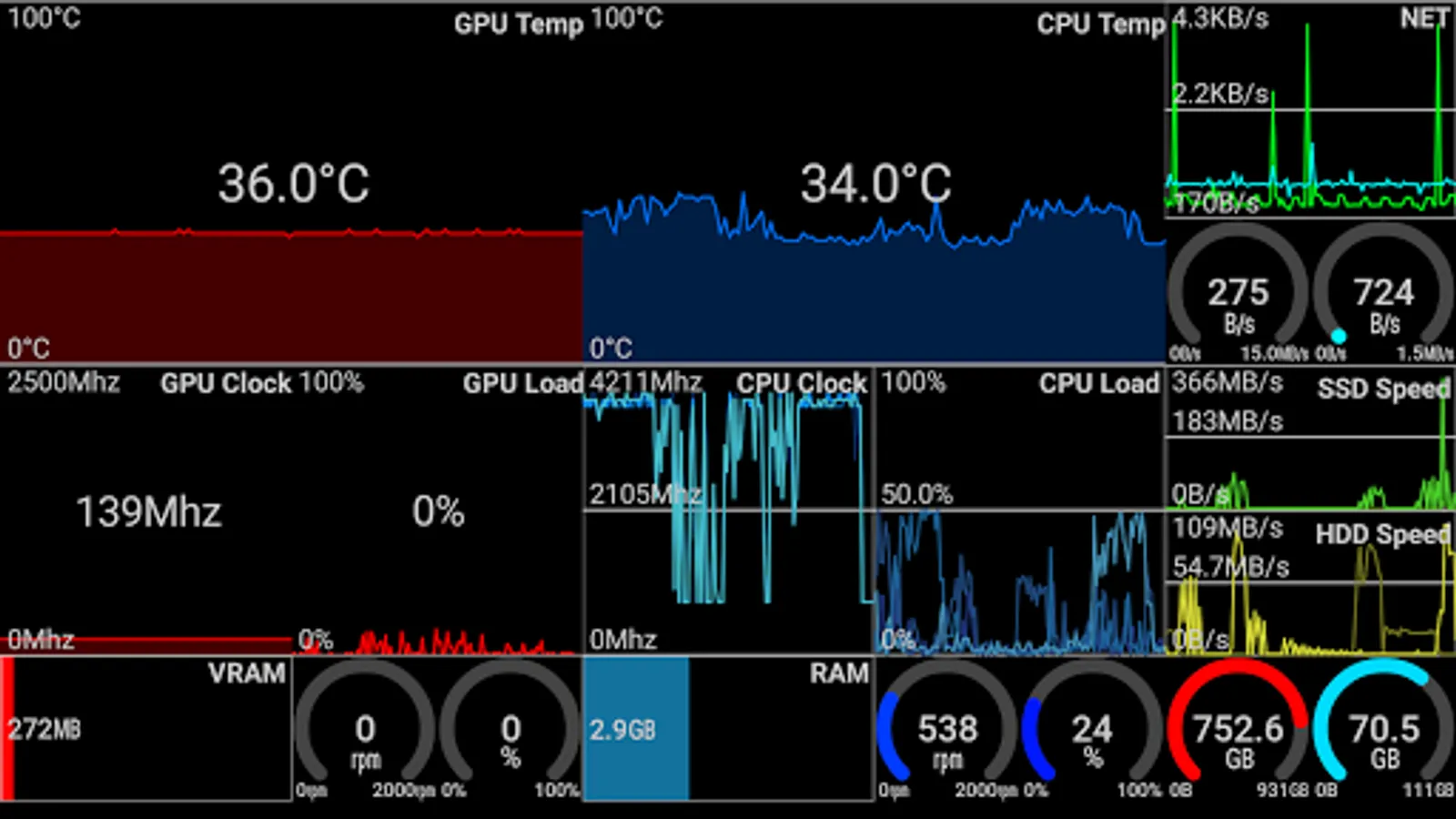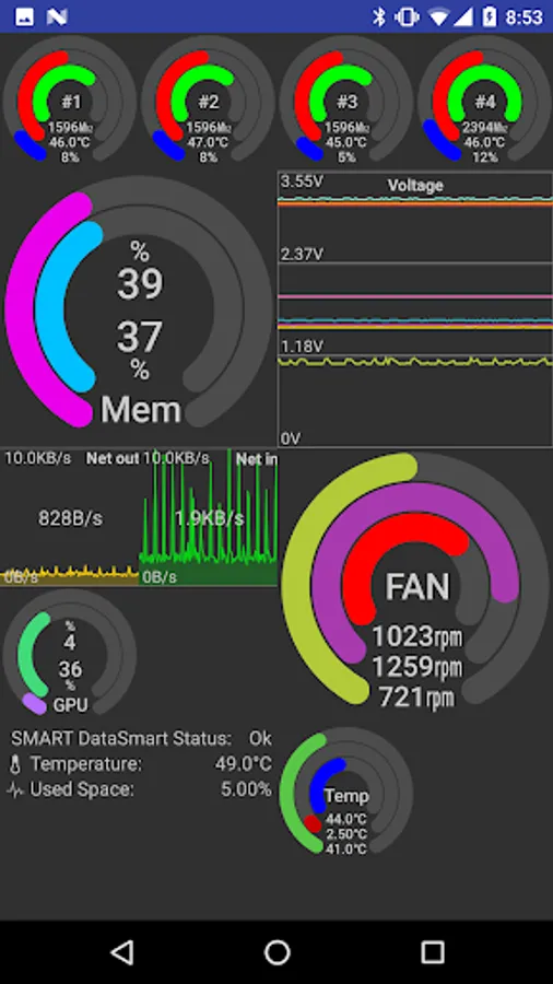 Remote System Monitor is composed of an Android application to display system information and a server software for Windows PC. Get Windows server software at https://www.trigonesoft.com/download.html