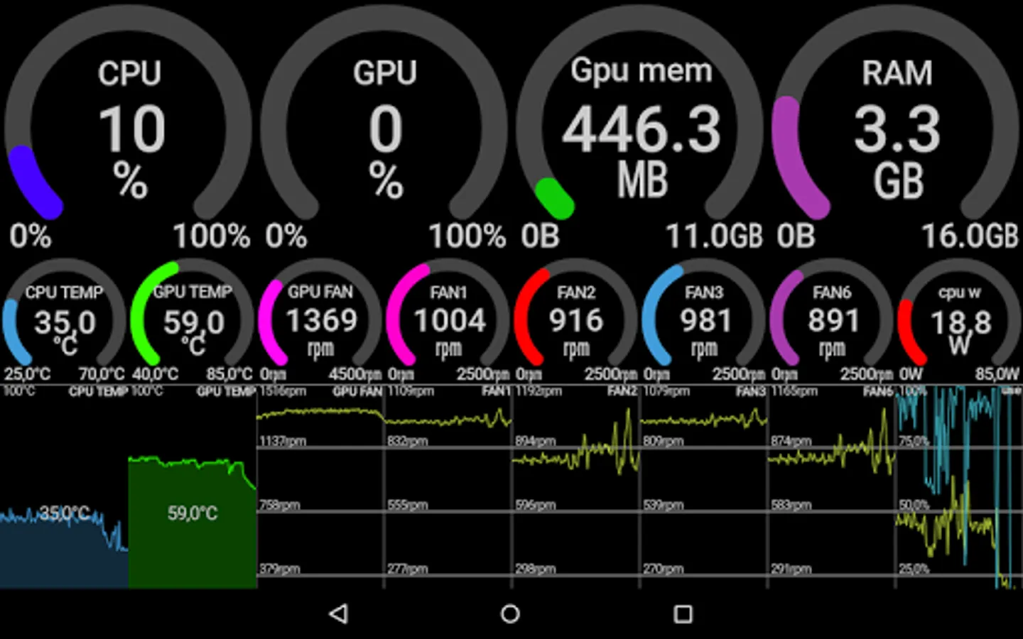 - fan speed (cpu, gpu, motherboard, etc...) and fan control