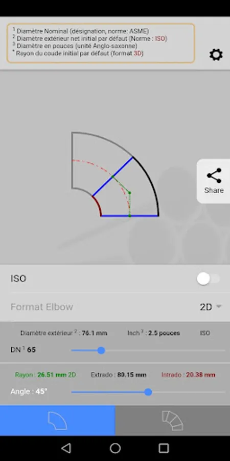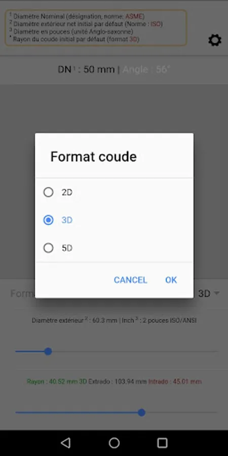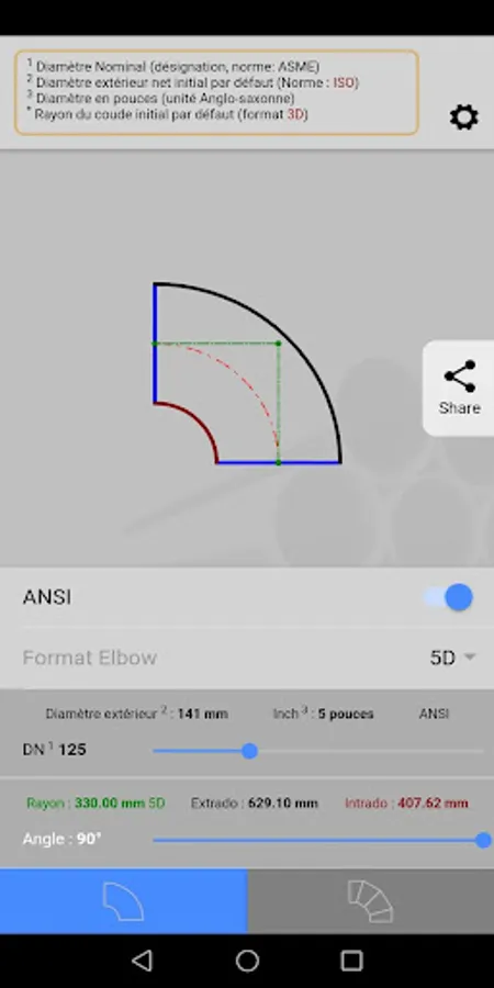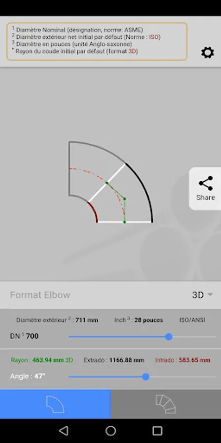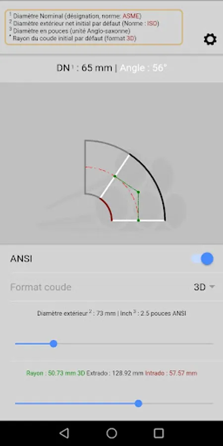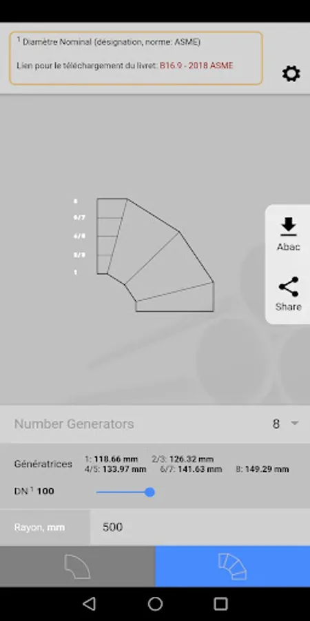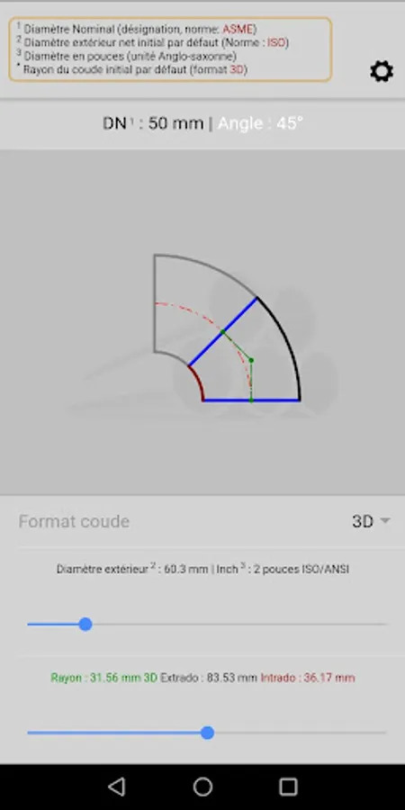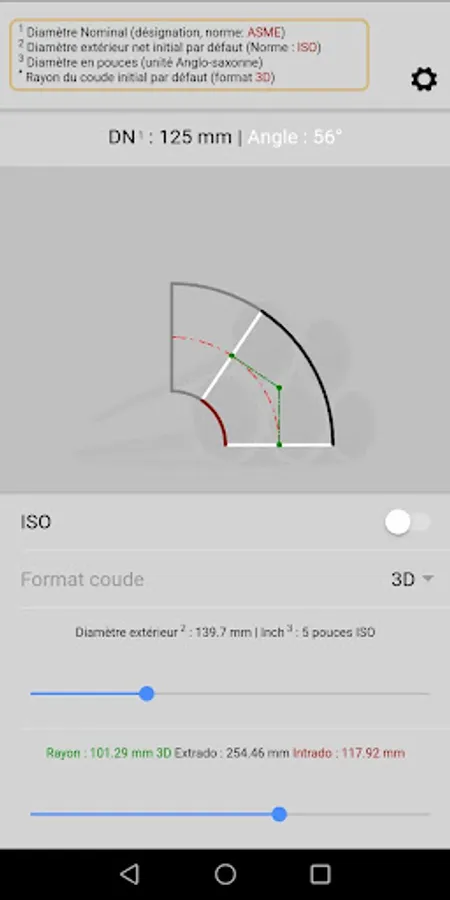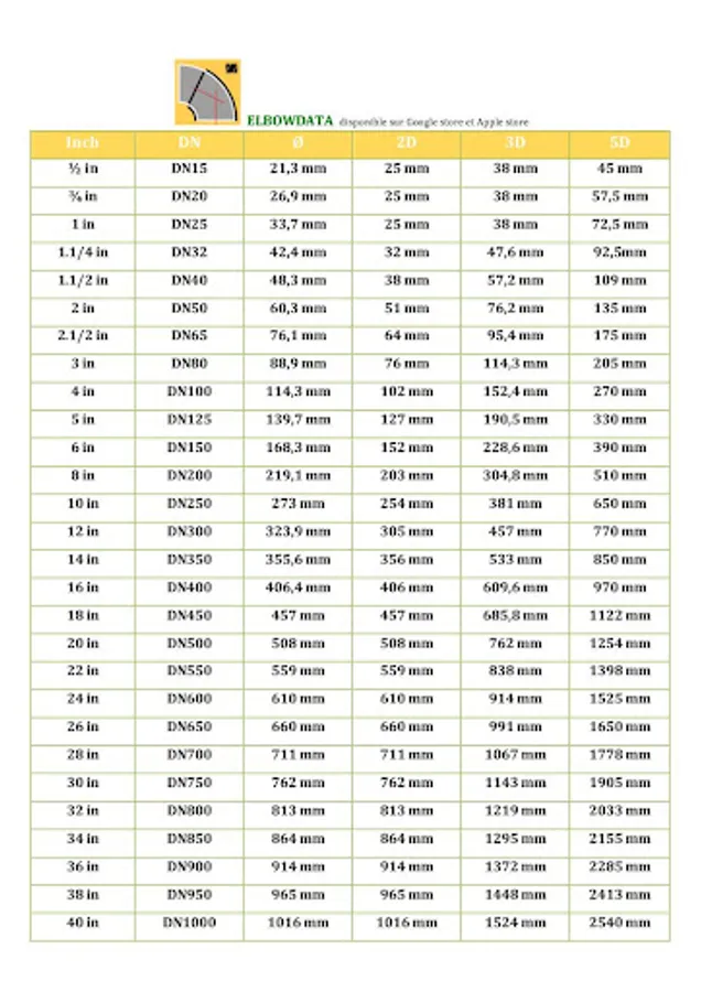 The application proposes to visualize in real time the values relating to pipes and elbows (Steel / Stainless steel) according to current standards (ASME), practical for industrial piping.