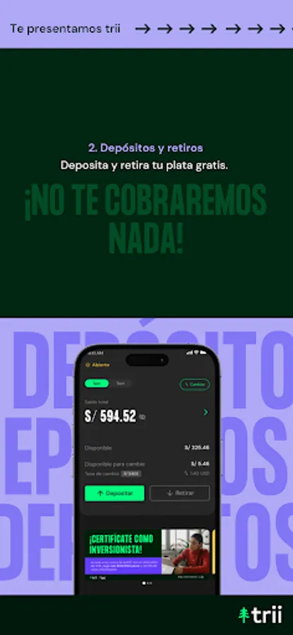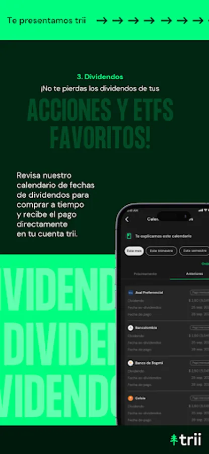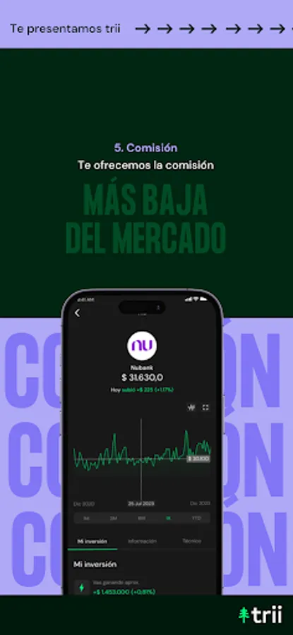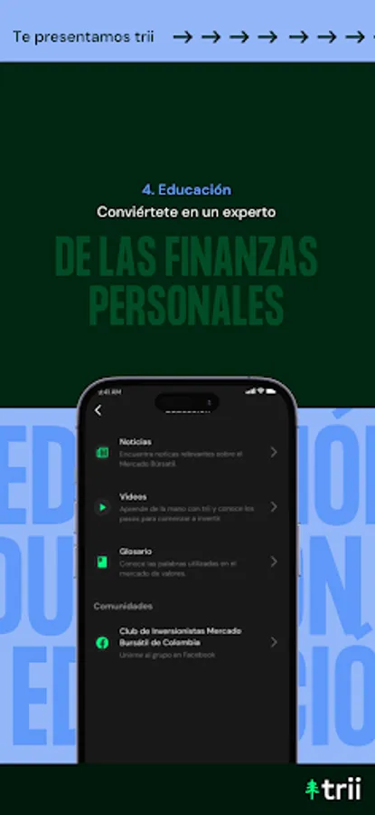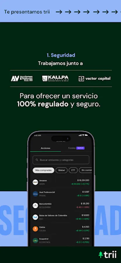 Have you ever wanted to buy a share in the Latin American market and have not been able to? trii is the first application that allows you to invest in the action that you want on the local stock market. Everything happens on your cell phone, open your account, validate your identity, create your risk profile, top up your account, buy shares and withdraw your benefits without leaving where you are.