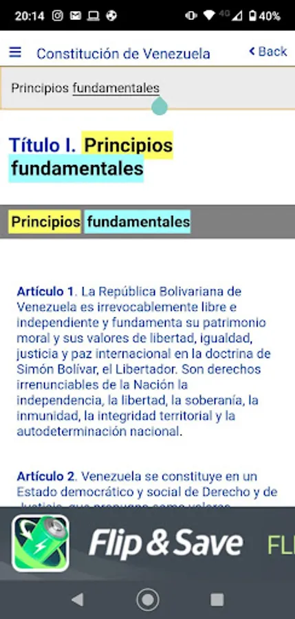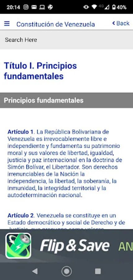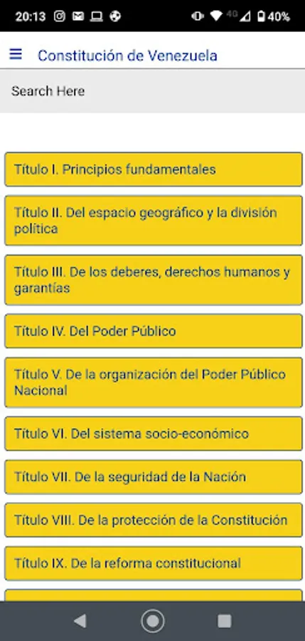 The Constitution of Venezuela with search and copy paste functionality is made up of a Preamble of 350 articles, divided into 9 Titles, 33 Chapters, the Repeal, Transitory and Final Provisions.