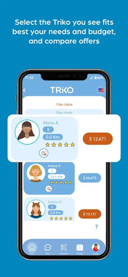 You can build your community by adding your friends and family. See the helpers that are being hired by your community in real time and save your favorite helpers for when you may need them most. Only you will decide who to hire by accepting or rejecting offers done by Triko members.