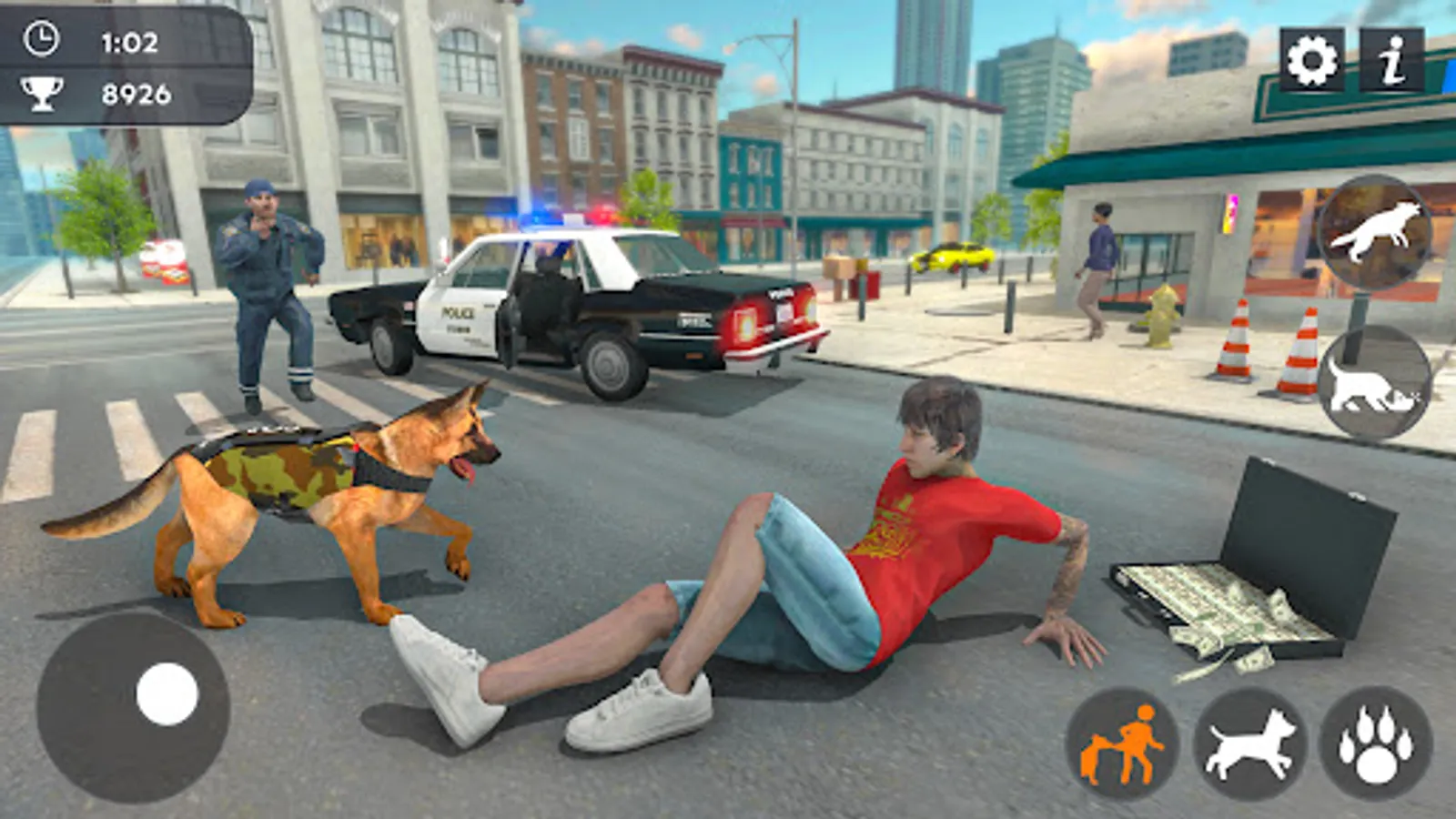 Aggressive dog chases suspect and bark so that cops can easily catch for further investigations. This game is for wild dogs games fans with such incredible military dog simulator activities.