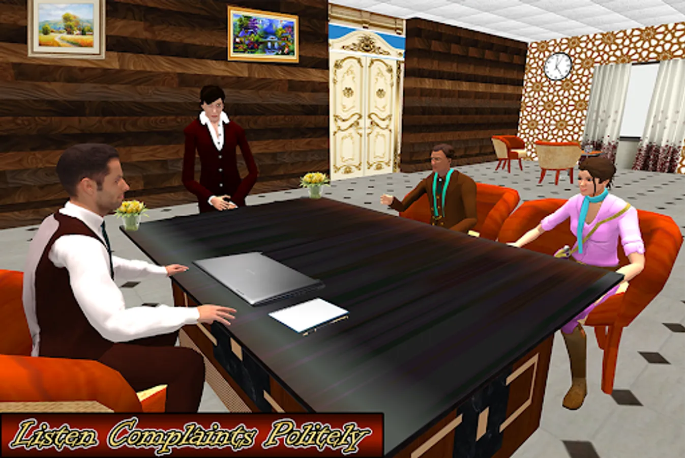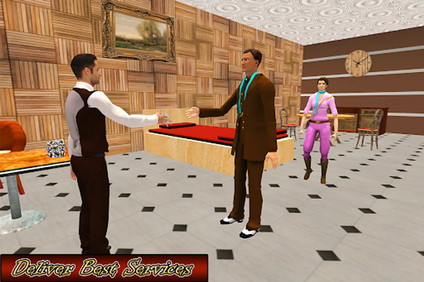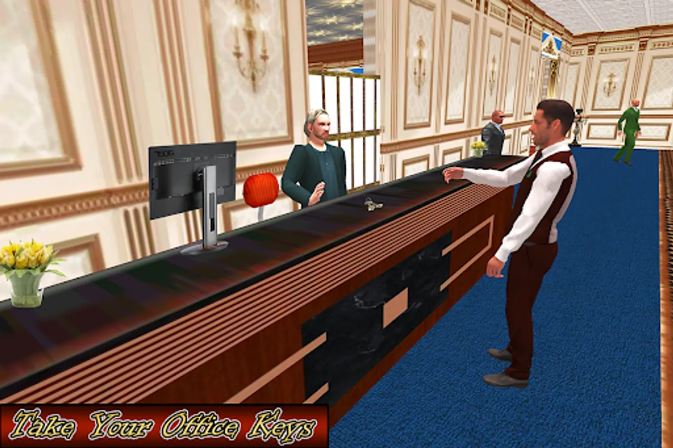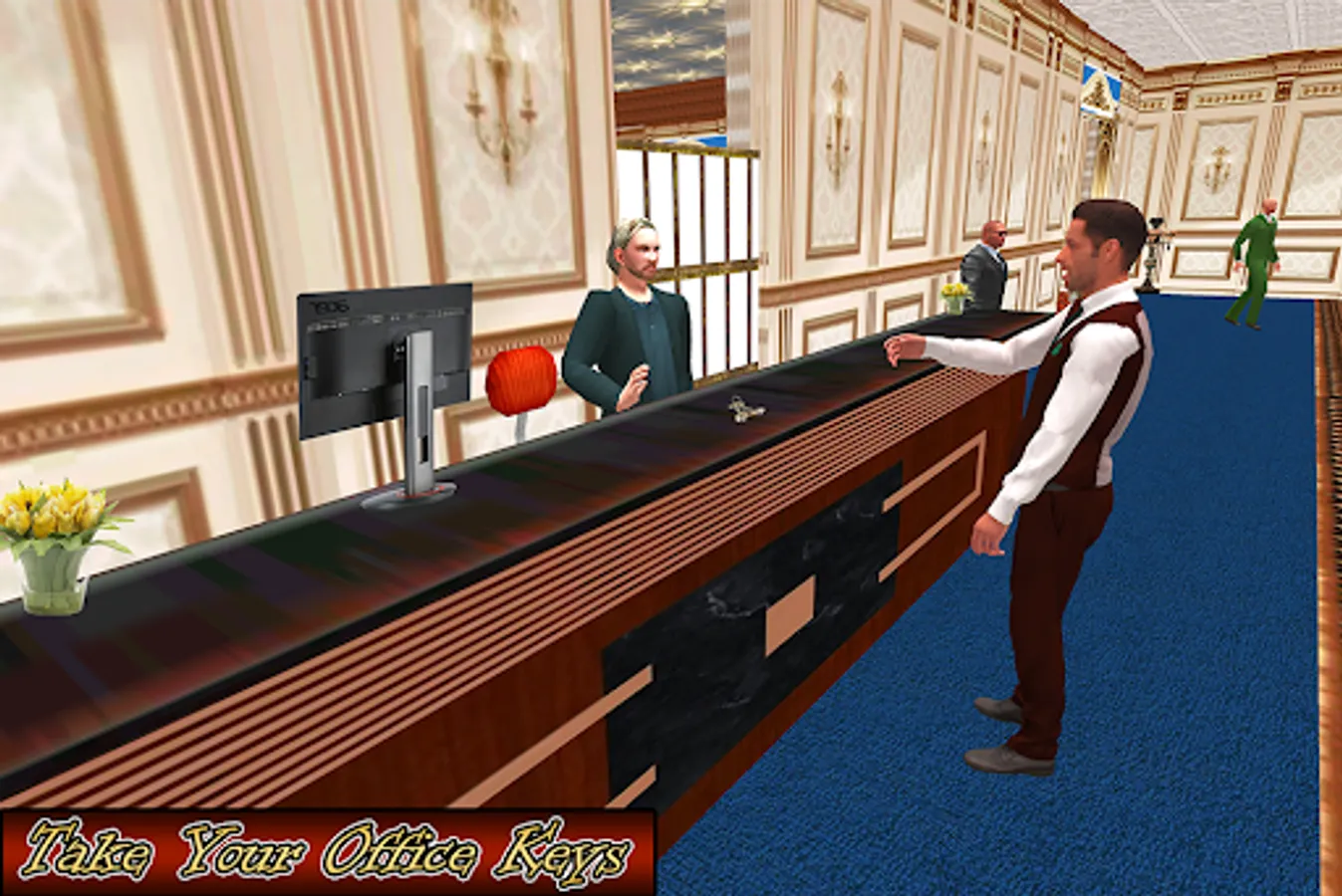 Introducing the Virtual Manager Hotel Star game where you got hired for the job of hotel manager of a luxury city hotel. This is your first day of hotel management job, get information from the receptionist about your virtual office and take the keys. The room service boy will help you to find your office in hotel manager game. Try to deliver the best services and fulfill all your responsibility in hotel booking game.