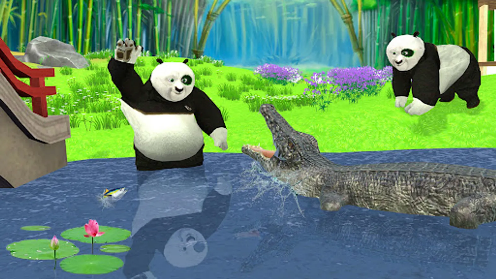 Go with your family on the riverside, give bath to your panda, drink water to increase your health and defeat hungry crocodile underwater king who is trying to attack to your family in this Angry kung fu Beasts forest survival 2022.