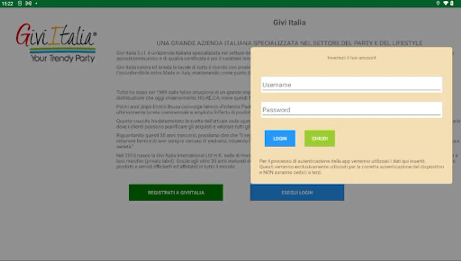 Mobile app to present GiviItalia products. To access the catalog you need to register on the website.