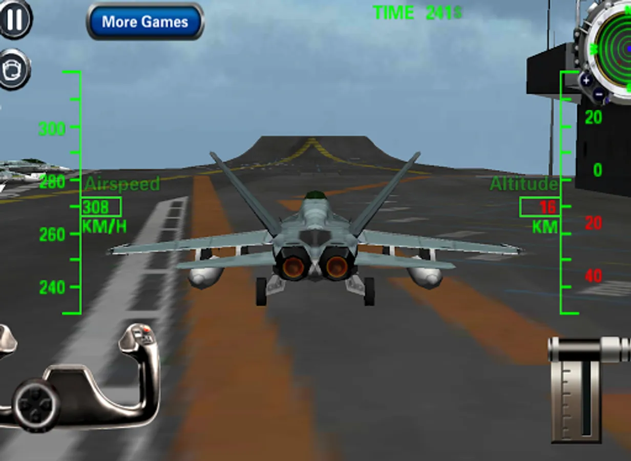 Are you looking for a game in which you can fly an advanced jet fighter trough the skies. Are you looking for a free fighter jet games that can teach you to fly like the best Navy Air force fighter plane pilots. Learn how to land and take off your F18 fighter jet plane from a carrier. So if you think you have what it takes to fly an F18 jet fighter. Here is your chance to get a taste o flying one of the most sophisticated aircrafts in the world .