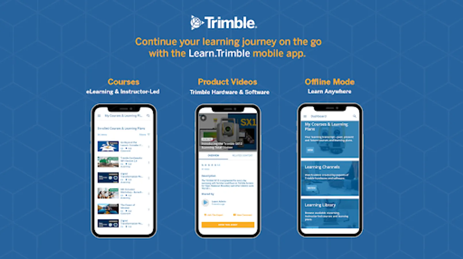 Continue your Trimble learning journey on the go with the Learn.Trimble mobile app.