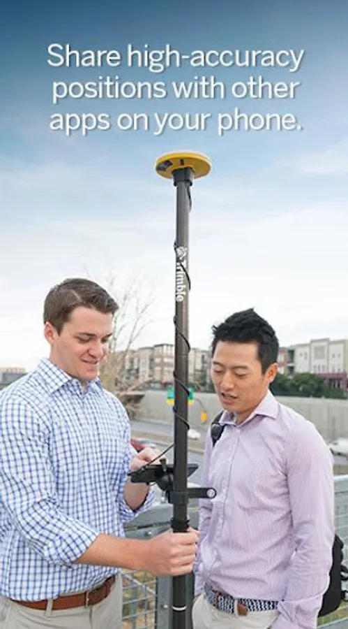 Use this app to configure and test your GNSS receiver, setup GNSS receivers for use with Trimble Precision SDK enabled apps, or connect to and share high precision positions with other applications which use Android Location Services.