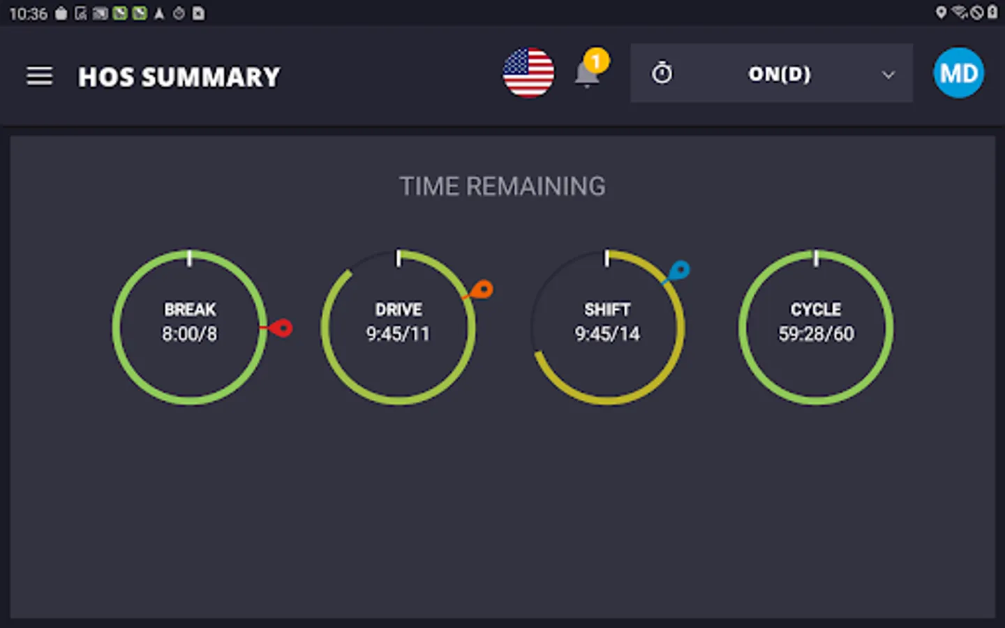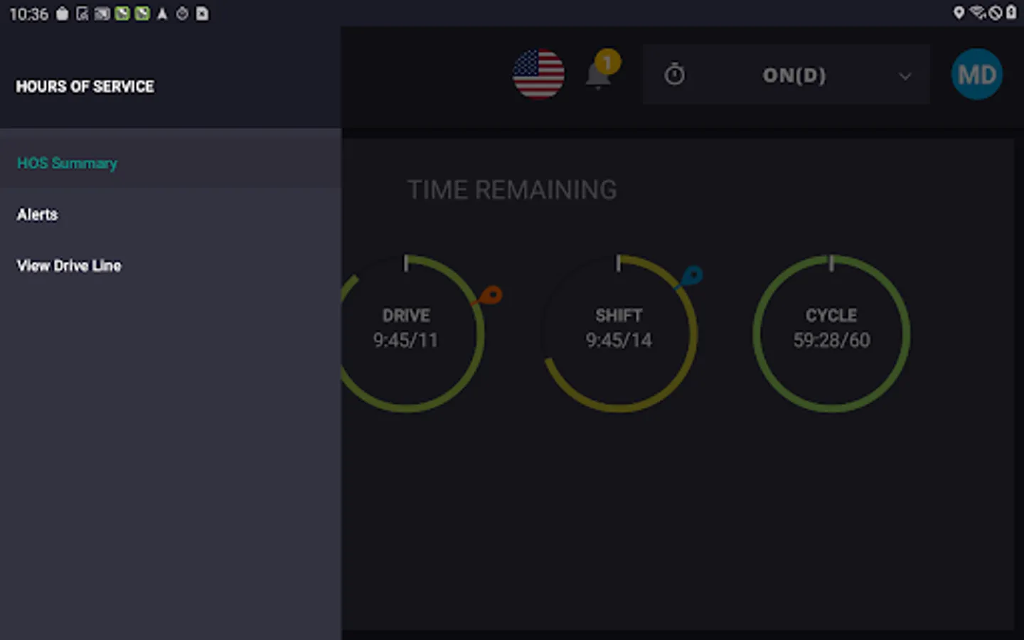 Trimble Driver HOS application provides drivers with additional tools that help them manage their Hours of Service (HOS). This includes reviewing available hours, managing alerts and creating notifications when a driver is nearing the end of their available drive time.