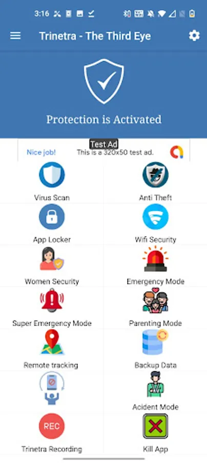 when you press power button 4 times super emergency mode will activate When you are in a danger Trinetra automatically calls nearest police station and it will send current location and records entire conversation and take random pics to emergency contacts