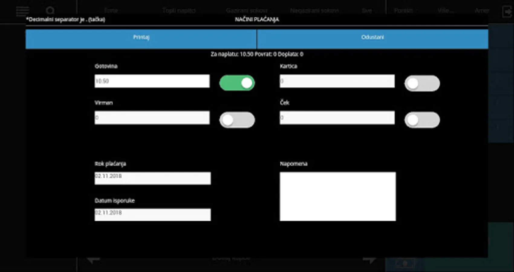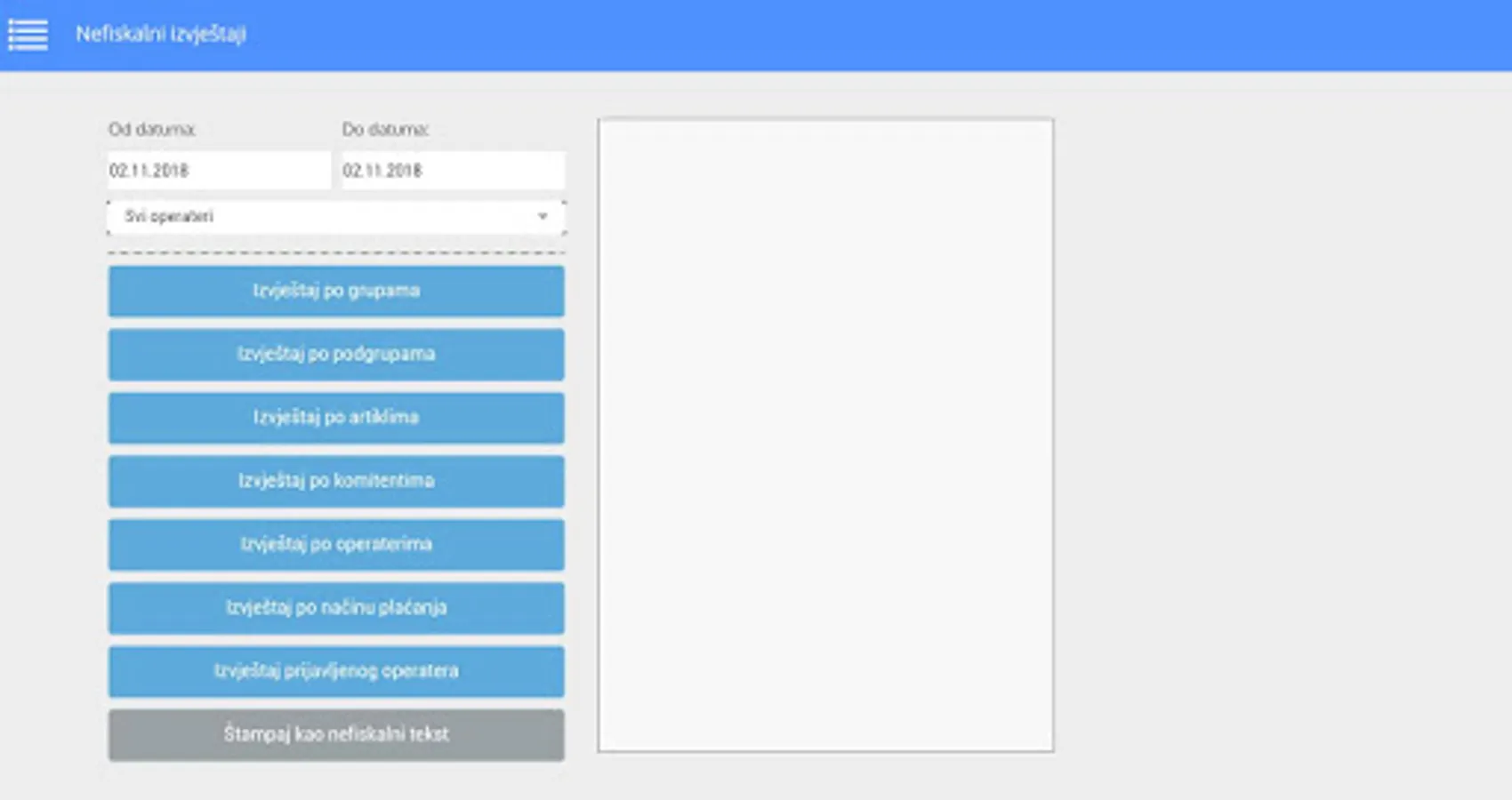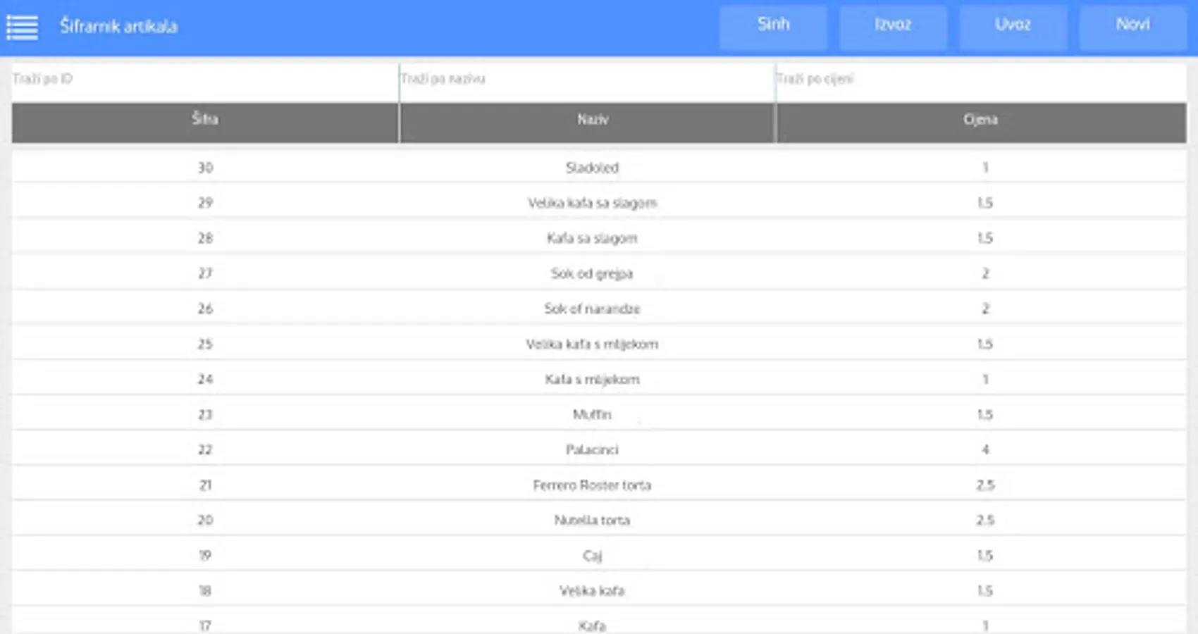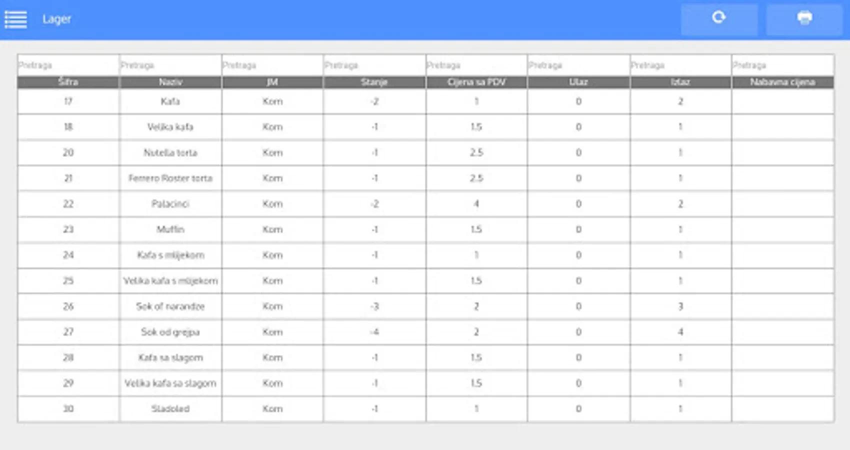 - Administracija (dodavanje / dorada / brisanje proizvoda, komitenata, operatera)