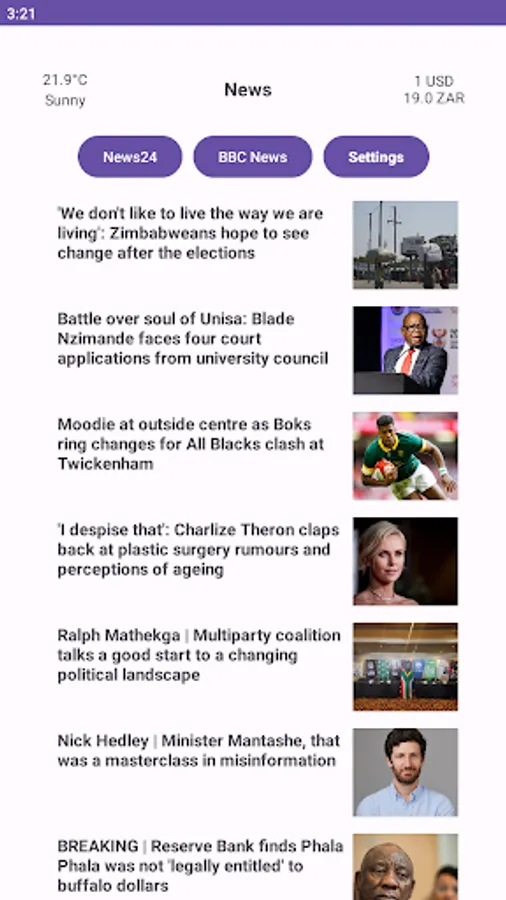 Stay informed and connected with Bigger Picture News. Get up-to-date headlines from trusted sources like BBC News and News24. Explore a range of articles and stay updated on current events, world news, and more. Personalize your experience by customizing currency exchange rates and weather forecasts. Whether you're on the go or relaxing at home, Bigger Picture News is your reliable source for the latest news and information.