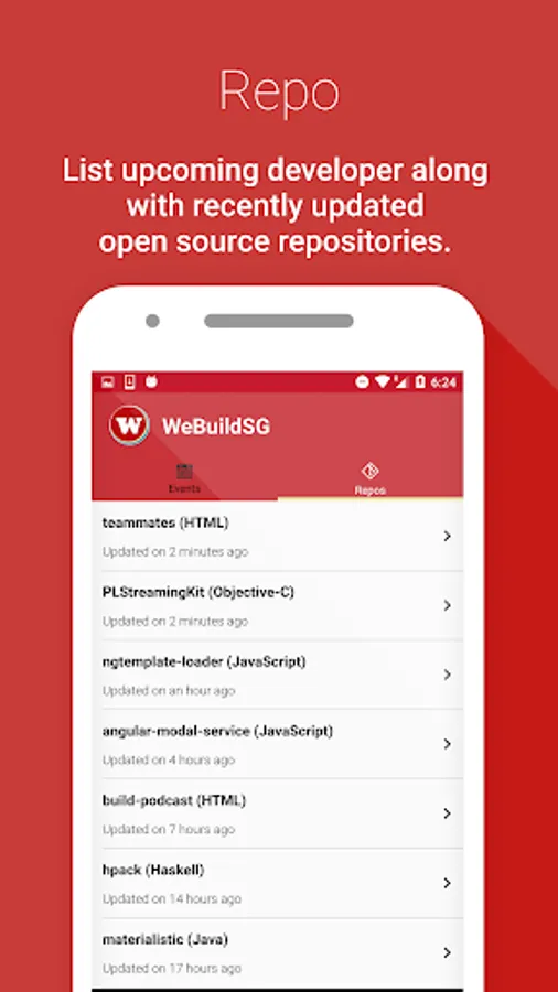 Exploring the tech scene in Singapore? Connect with designers, makers and engineers through open events and open source projects. This app will give you the upcoming developer and design events along with recently updated open source repositories.