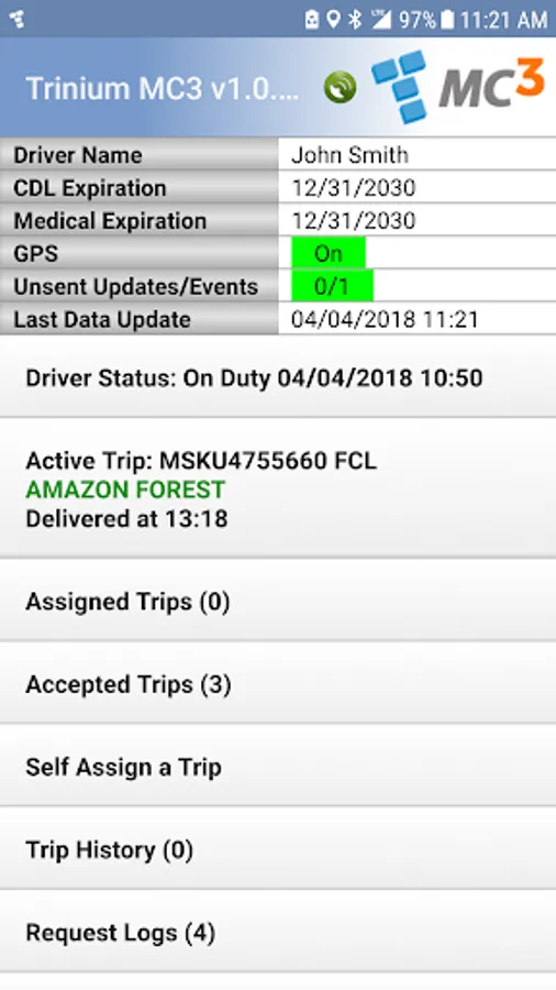 Trinium MC3 is a mobile app designed for truck drivers who work for intermodal trucking companies that use Trinium TMS (transportation management system) as their back office operating system. MC3 is installed on handheld devices for use by truck drivers. MC3 is an extension of the main Trinium TMS application, enabling improved productivity throughout the operation of the intermodal trucking company. MC3 functionality includes mobile dispatch workflow, document capture, signature capture, GPS tracking, and geofencing capabilities. MC3 is used by owner operators and employees drivers alike. To operate MC3, the trucking company must have active Trinium TMS and Trinium MC3 licensing or subscription agreements.