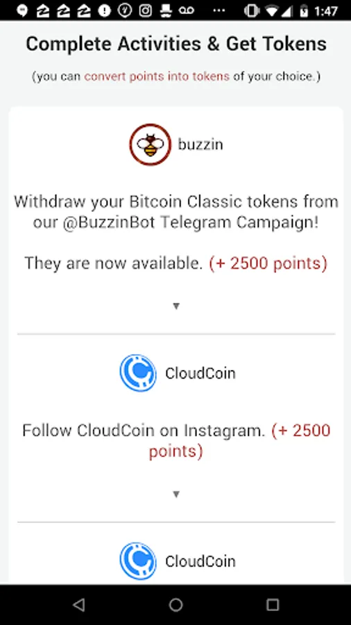 Complete them, earn points, and exchange points for the cryptocurrencies of your choice.