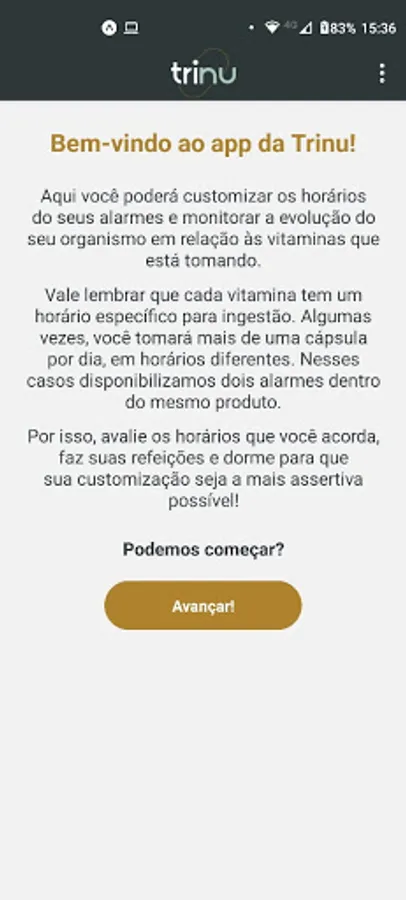 Trinu is a vitamin brand focused on people's physical and mental health. Our main objective is to identify possible nutritional deficiencies and suggest the necessary vitamins in a customized way for each client. Through a simple and quick questionnaire and an artificial intelligence service developed by nutritionists and health professionals it is possible, not only to identify and suggest, but also to advise on the best moment of consumption and monitor the results achieved, providing periodic reports to customers .
