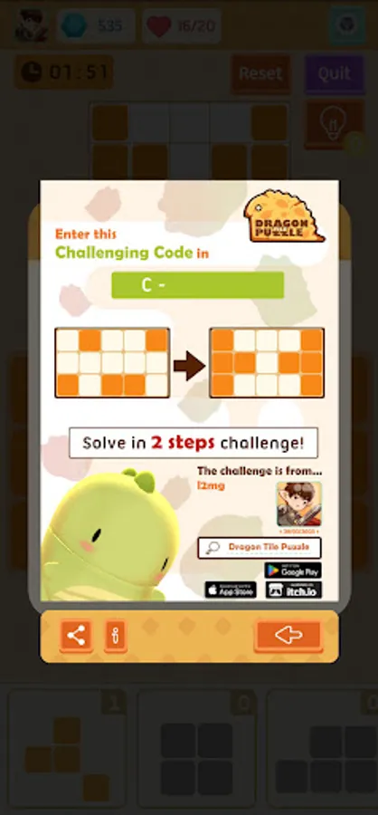 In Dragon Tile Puzzle you can share puzzles with your friends, see who can solve the most difficult puzzle!