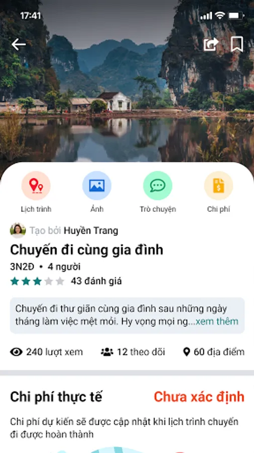 + Tools to create and track schedules: Trip.vn provides a flexible travel scheduling tool that helps you optimize accommodation and travel costs as much as possible. Support for sample-based schedule suggestions from more than 100,000 real trips from users. A notification will be sent to remind you of upcoming activities according to the scheduled schedule.