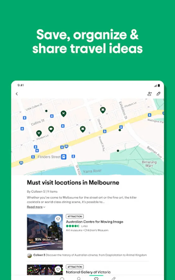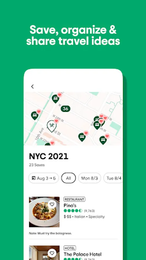 Use our planning tool, Trips, to save and organize traveler-recommended places. See your saves on a map, as well as share and collaborate with your travel companions.