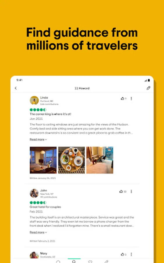 Access millions of reviews about hotels, restaurants, tours, attractions and other experiences from travelers just like you