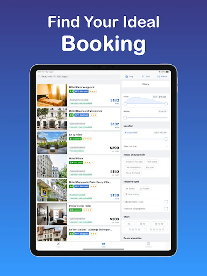 Easily search, filter and sort your options to find the right travel offers for you - whether it's flights you can change with no fees, hotels & vacation rentals with free cancellation, the cheapest deal, or the most comfortable seat.