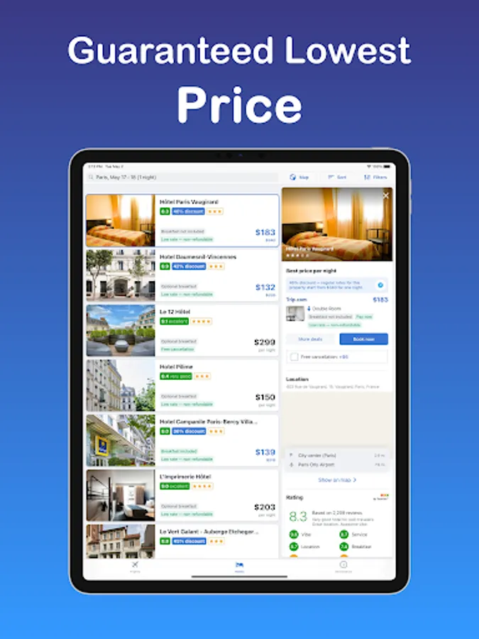 • Stay flexible by easily filtering for hotel deals and vacation rentals with free cancellation.