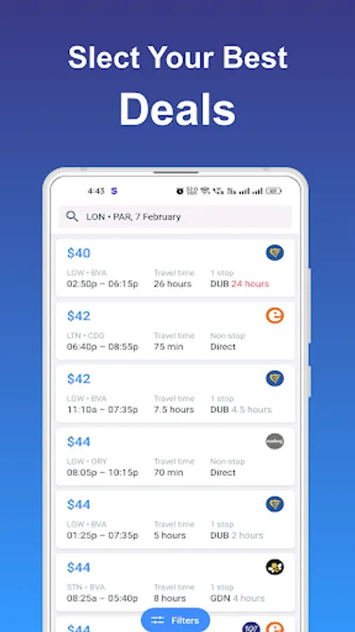 • Filter options based on stops, airlines, departure times, cancellation policies, amenities & more.