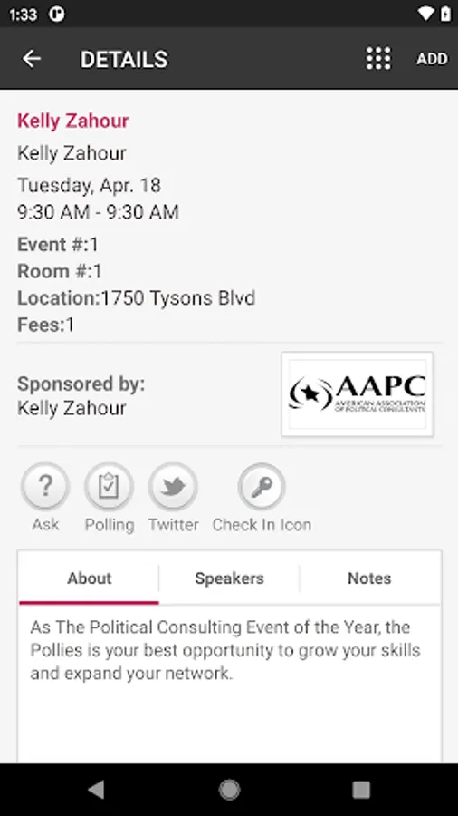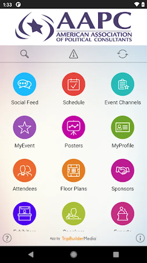 This TripBuilder Multi Event Mobile™ app is provided at no charge by the American Association of Political Consultants (AAPC). It was designed and developed by TripBuilder Media Inc. If you have any questions, or need any support regarding how to use this app, please submit a Support Ticket (located within the Help icon in the app).