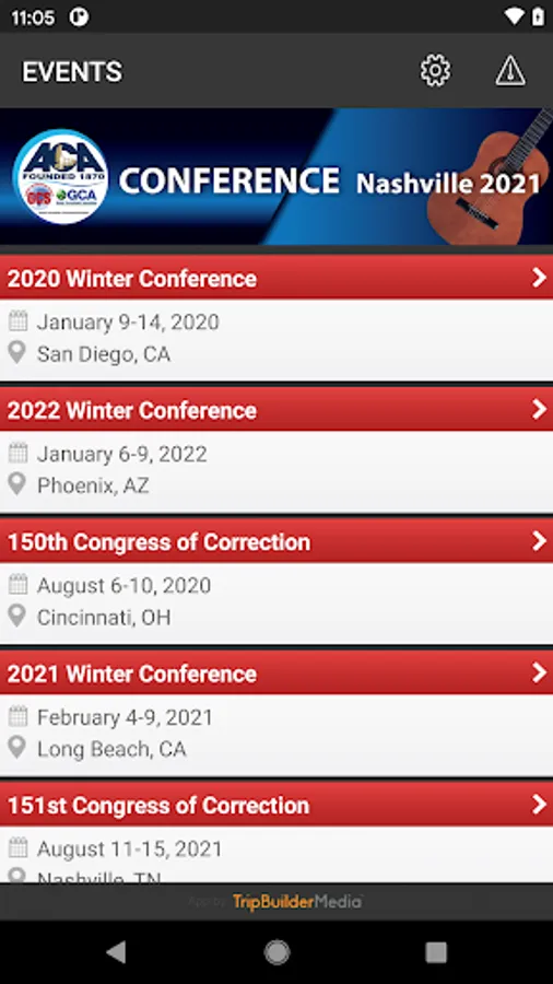 This app is provided at no charge by the American Correctional Association (ACA). It was designed and developed by TripBuilder Media Inc. If you have any questions, or need any support regarding how to use this app, please submit a Support Ticket (located within the Help icon in the app).