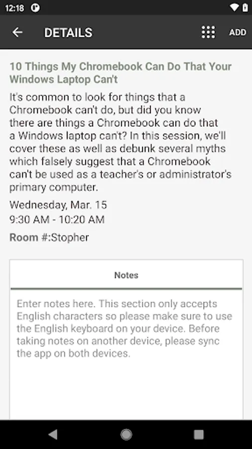 Use this app to keep up with all of the latest notifications during the conference, find sessions, and review sessions.
