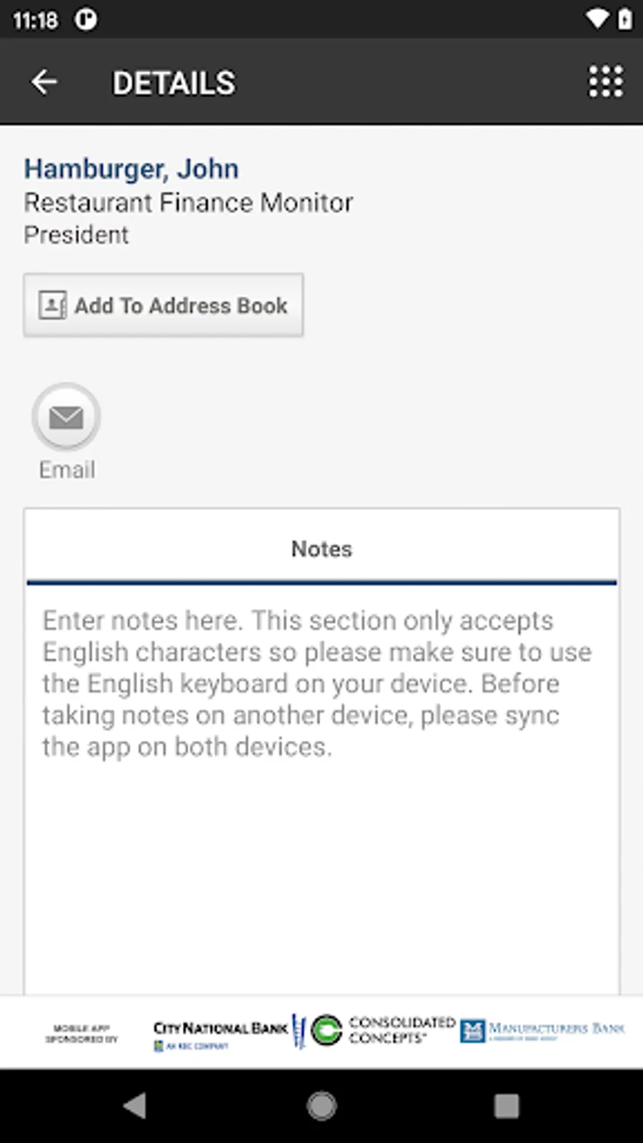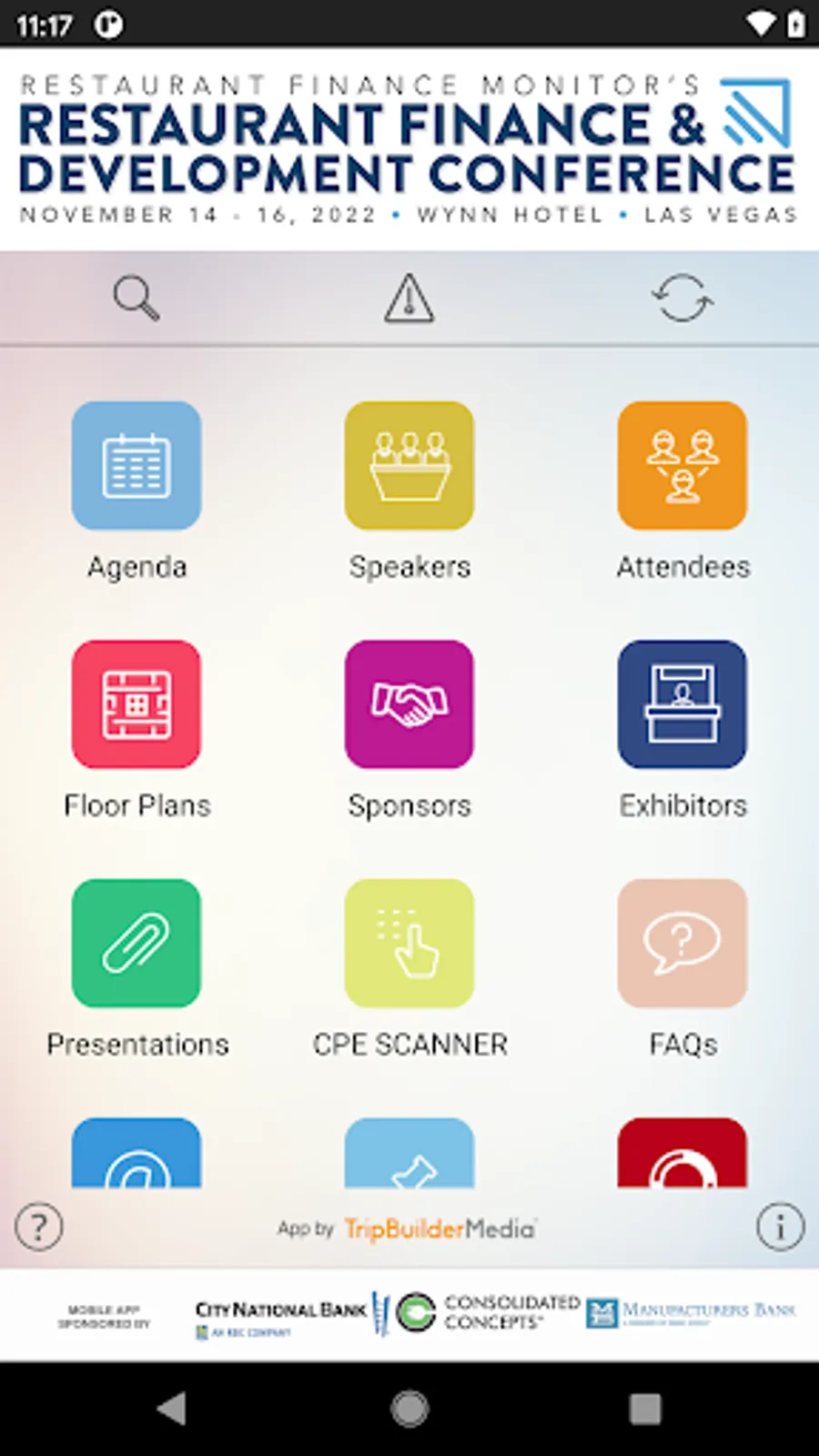 This TripBuilder EventMobile app is provided at no charge by the Restaurant Finance Monitor. It was designed and developed by TripBuilder Media Inc. If you have any questions, or need any support regarding how to use this app, please submit a Support Ticket (located within the Help icon in the app).
