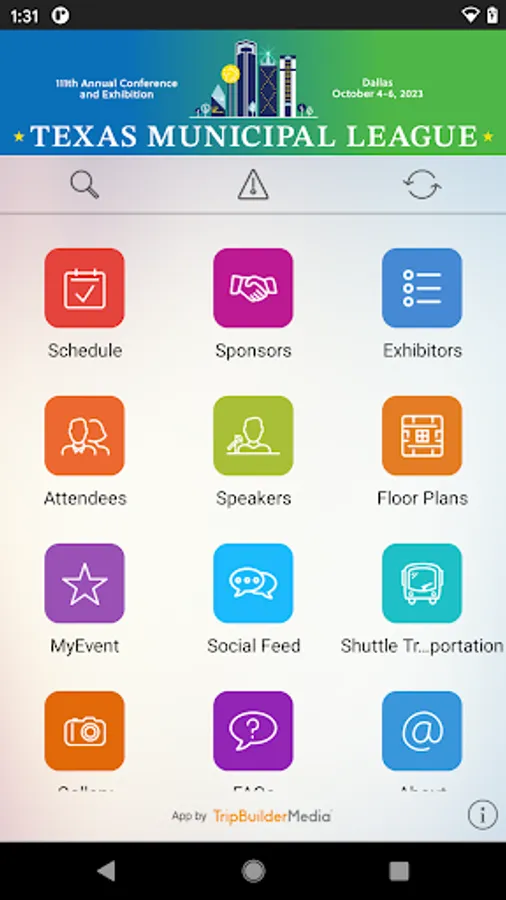 This TripBuilder EventMobile app is provided at no charge by the Texas Municipal League (TML). It was designed and developed by TripBuilder Media Inc. If you have any questions, or need any support regarding how to use this app, please submit a Support Ticket (located within the Help icon in the app).