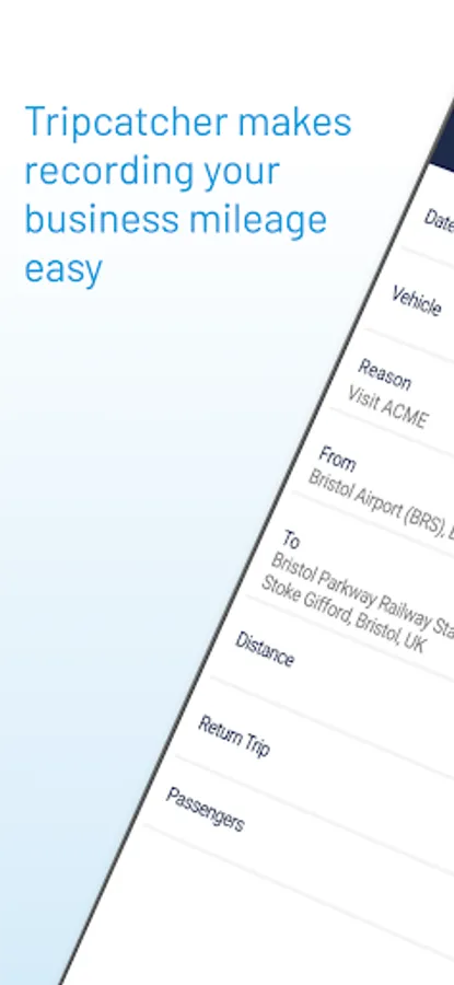 The Tripcatcher phone app is a companion app for the Tripcatcher web app, capturing your trip information on the go to support your mileage expense claims.