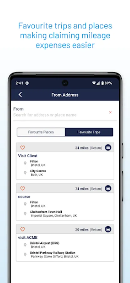 The app provides accurate mileage tracking for business mileage, for claiming milage relief from HMRC and for any other reason that requires you to have a mileage log.